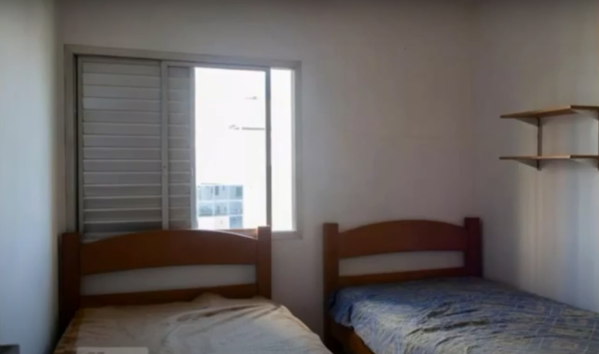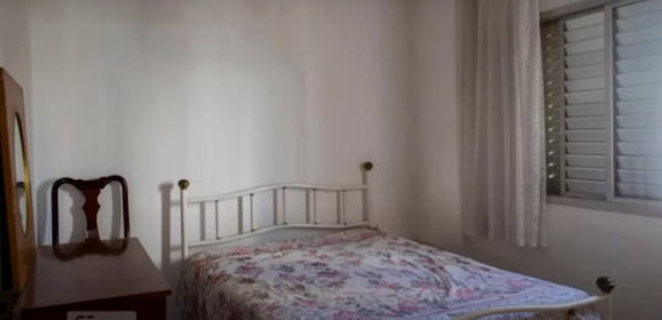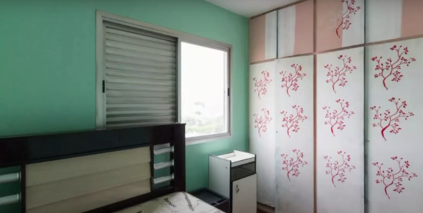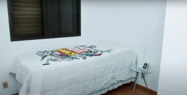 Percebam como esse quarto já está mais clean, a parede branca oferece amplitude ao local. Nossa dica aqui, seria incluir um quadro acima da cabeceira. Um quadro neutro, mas que pode agregar à decoração.