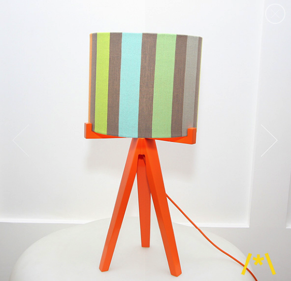 Você deve se lembrar do abajur Tripé Colours. Pra te ajudar, colocamos uma imagem dele abaixo. Além desse, temos uma versão de piso! Ela tem a base branca, com uma cúpula feita em parceria com a Bia Masson, da qual já falamos aqui no blog. Além dessas cores, é possível personalizar conforme o seu gosto.