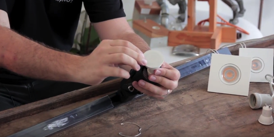Na imagem abaixo é possível ver que tipo de spot e lâmpada ele utilizou na solução caseira. A lâmpada é uma GU10,