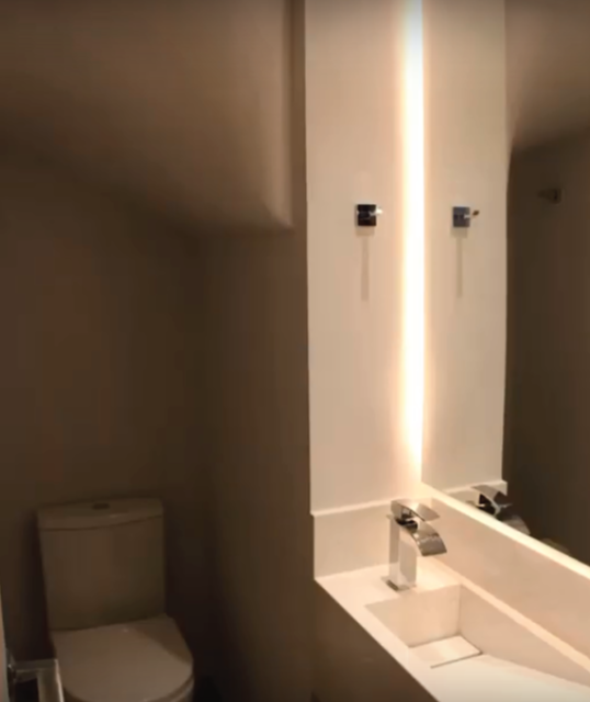 A fita de LED atrás do espelho, deu amplitude com esse toque.