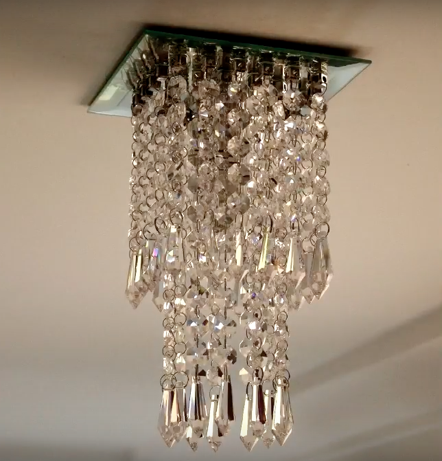 Este é o modelo mais usado para dar acabamento na lateral de plafons e lustres, junto do cristal peão, que costuma ter o mesmo efeito de placas e bolas, dando também certo acabamento no final dos lustres.