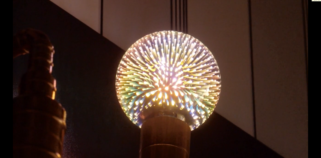 Essa lâmpada possui um design de vidro espelhado ao ser desligada. Dentro dela, há o formato de pequenas bolhas nas cores azul, roxo, verde e amarelo. Quando a luz entra dentro desta lâmpada e reflete nas pigmentações coloridas, ela faz o efeito multicolorido que a deixa com esse aspecto decorativo ímpar.