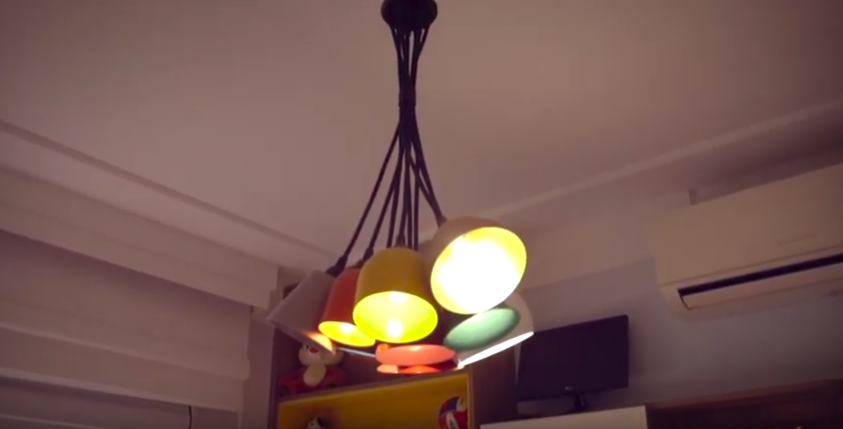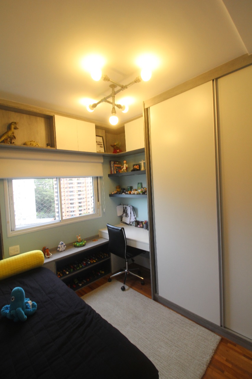 Há também nesse projeto, no quarto do menino, uma luminária criada por Bruno Mantovani, conforme você pode ver abaixo. Caso não saiba, Bruno, que também apresenta nosso canal, é designer com inúmeras criações em seu currículo. Nesse projeto mais um cliente ficou satisfeito em adquirir um produto criado por ele!