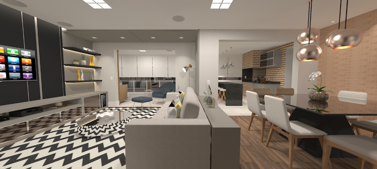 Quando você olha o projeto 3D comparado com o projeto real, é praticamente a mesma coisa. A impressão é de que você está entrando naquele apresentação digital, mostrando como o projeto conseguiu ser fiel ao que foi proposto. Isso acaba gerando uma ótima sensação de satisfação e dever cumprido.