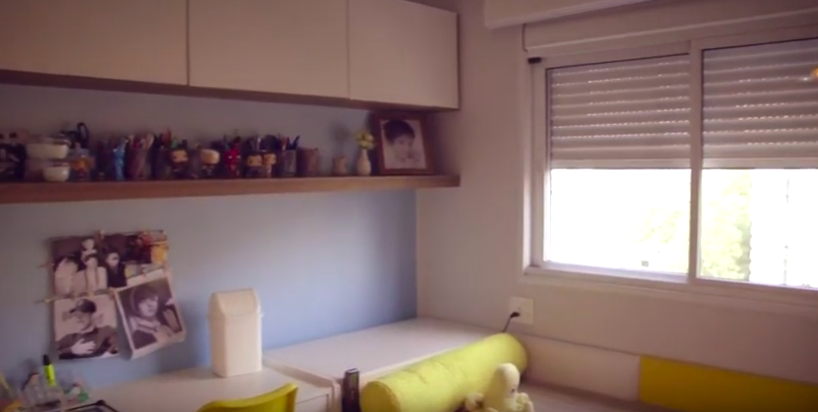 A princípio, já existia uma base nesse projeto. Ela estava pronta e ele decidiu não mexer. Essa base se constituía por um piso de madeira, que ele apenas restaurou. O que foi feito nesse caso foi uma adaptação para o quarto dos filhos, que estão crescendo e, consequentemente, mudando.