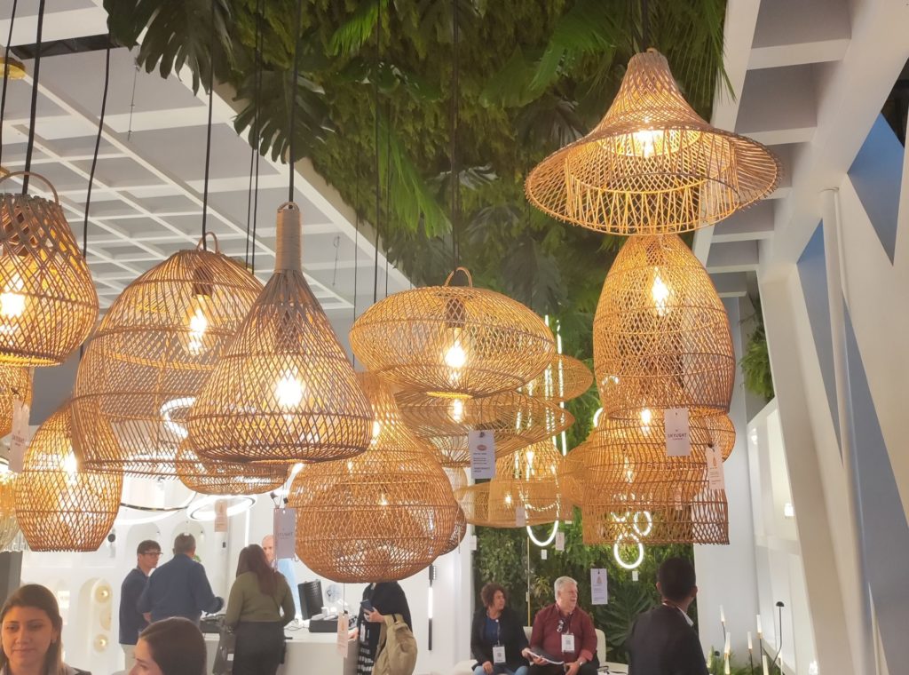 Helizarte- O estande explorou diferentes modelos de luminárias que remetem a natureza, sustentabilidade e sofisticação, destacando a tendência do uso da cor verde na decoração.
