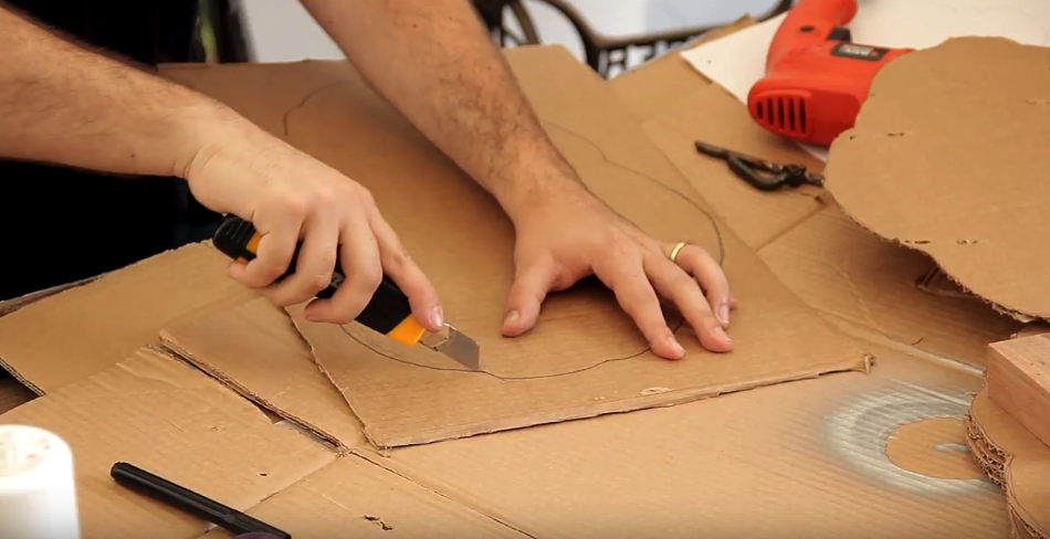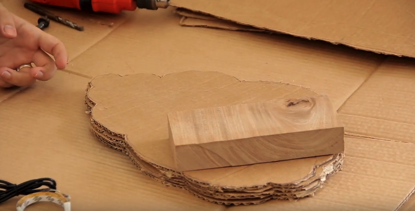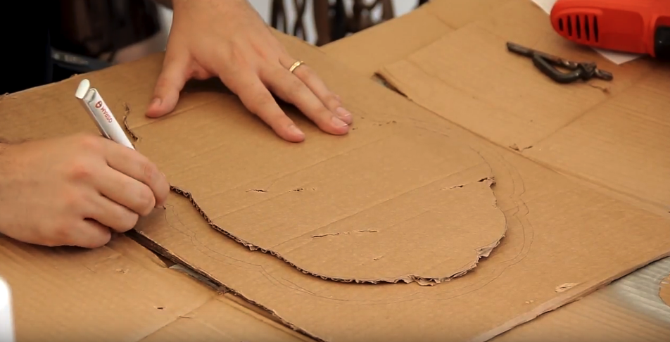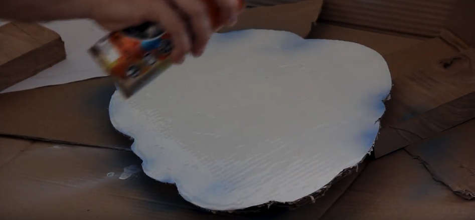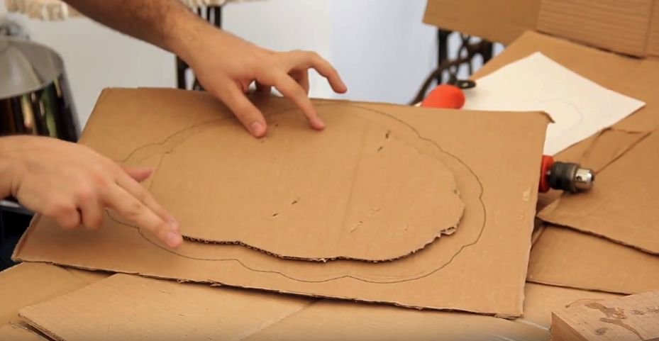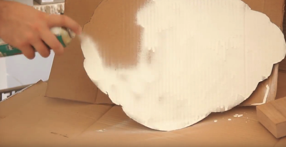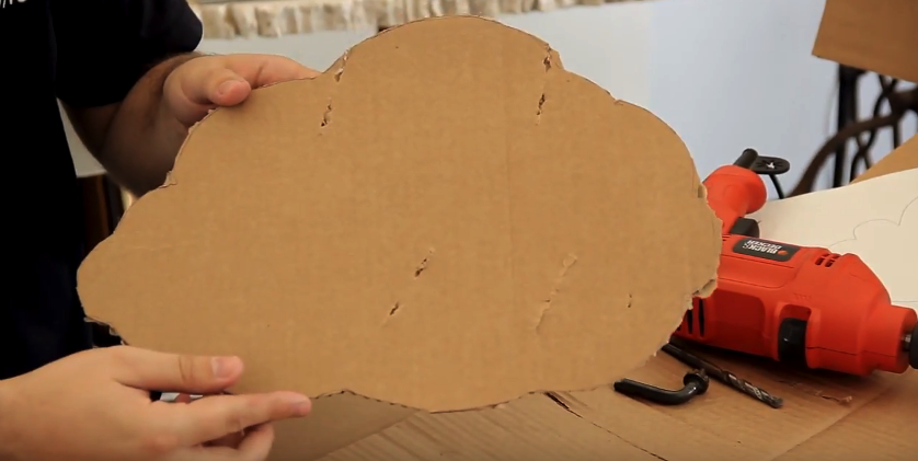 Com o rascunho criado, você deverá cortar alguns papelões para que tenham a forma de nuvem. Para isso, utilize cartões de 34×50 cm. Cuidado para não cortar demais e ter um resultado ruim. Corte alguns deles e os mantenha juntos com cola líquida. Você pode colocar algum peso para acelerar o processo de colagem.