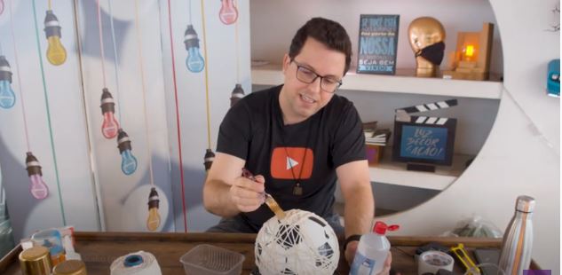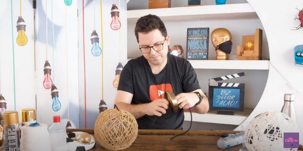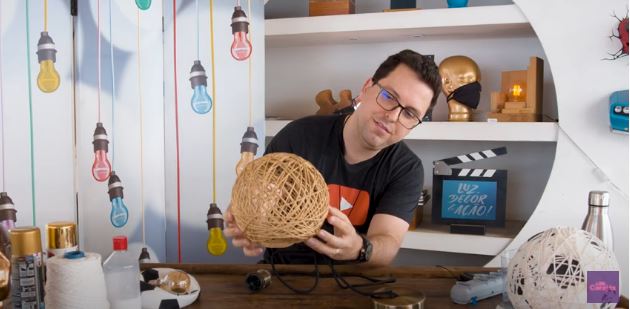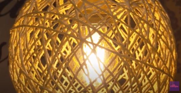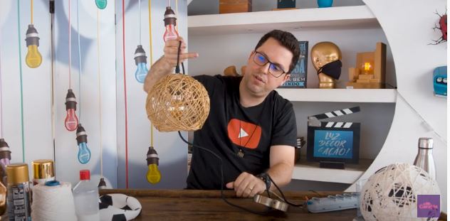 Com isso a sua luminária de barbante está pronta! E aí, gostou do resultado final? Achou fácil de fazer?