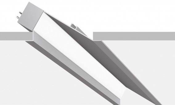 Esse perfil de LED possui corte reto e ângulo de 45°. Essa angulação direciona a luz para a parede, observe: