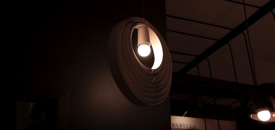 Esse pendente é bem interessante. Ele funciona como um casulo, que vai se abrindo, mudando a percepção da peça. Ela lembra o processo de vida de uma borboleta, que vem de um casulo e de repente aflora. Esse efeito pode ser visto através do trabalho de sombras nesta luminária incrível.